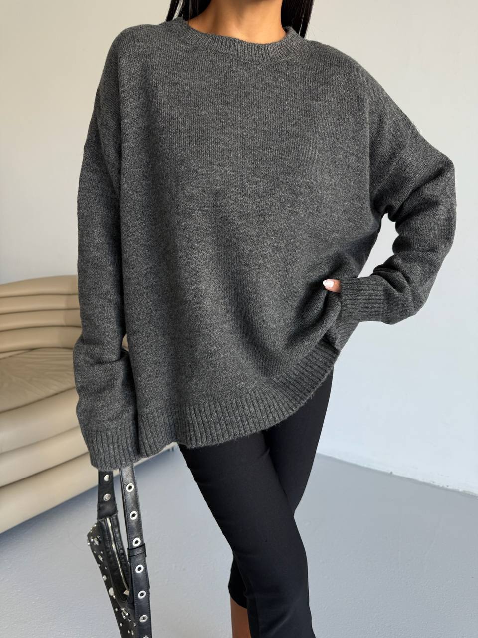 - Oversized knit sweater with crew neckline